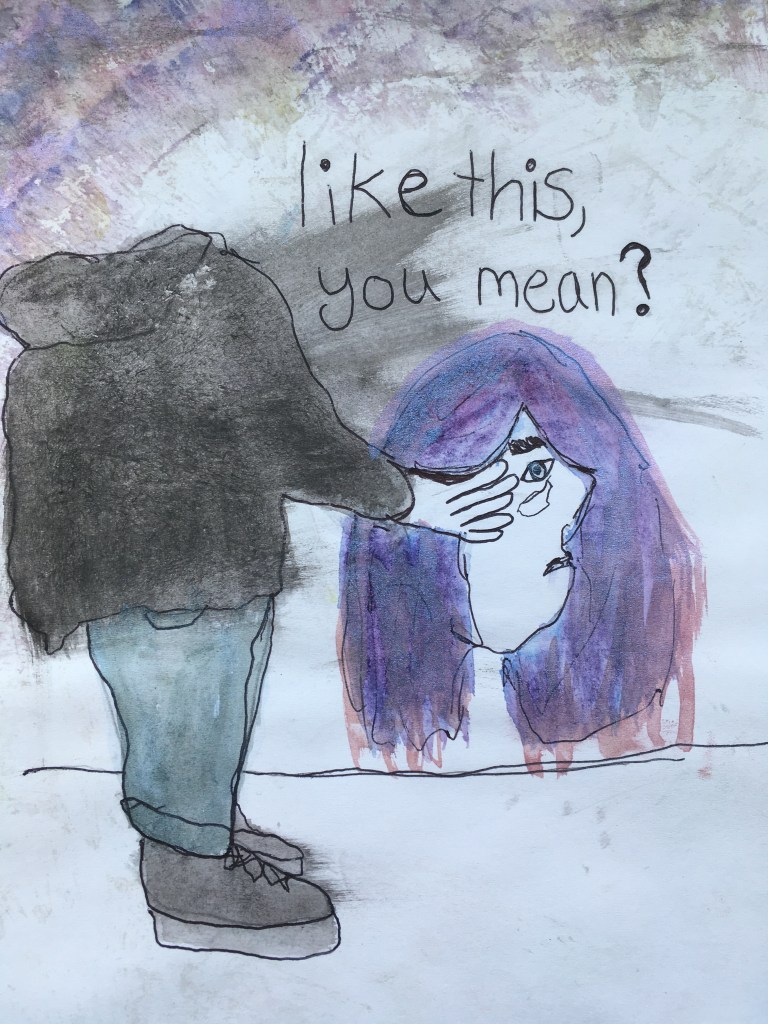 The above piece was one of my first therapeutic artworks and was a response to starting CBT, I thought therapy was about handing over your head and it’d be fixed, but therapy actually teaches you how to fix yourself. I found the combination of self taught therapeutic art and therapy to be LIFE CHANGING.